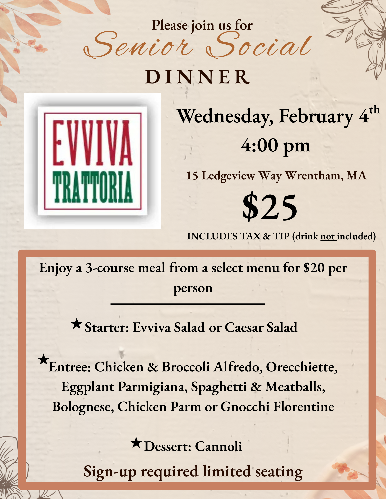 Senior Social Dinner-(Evviva Trattoria)-February 4